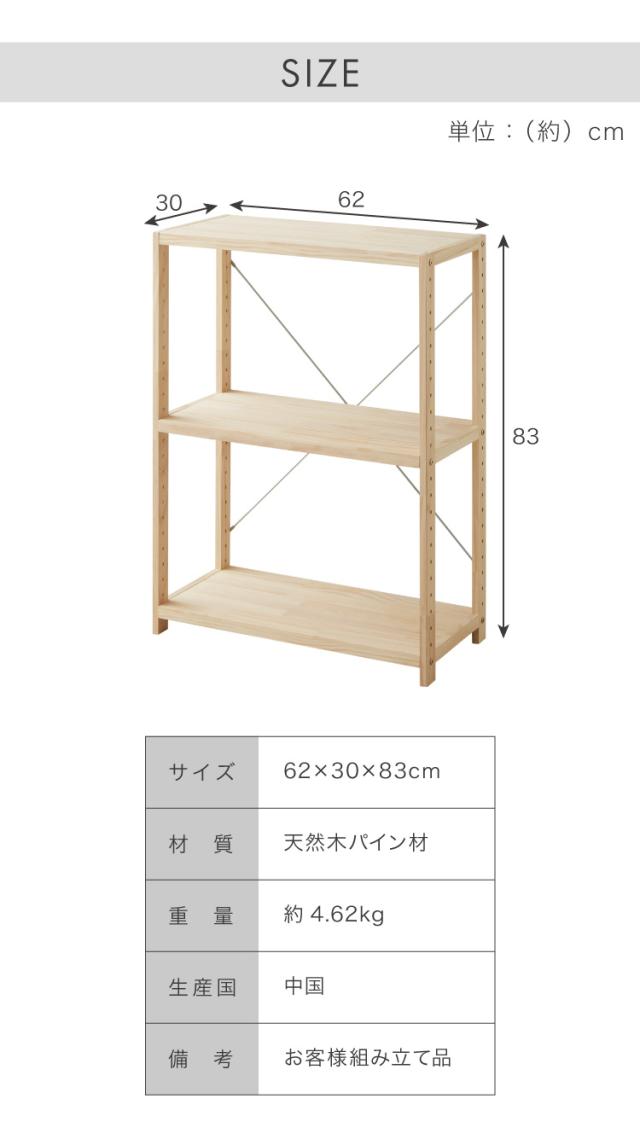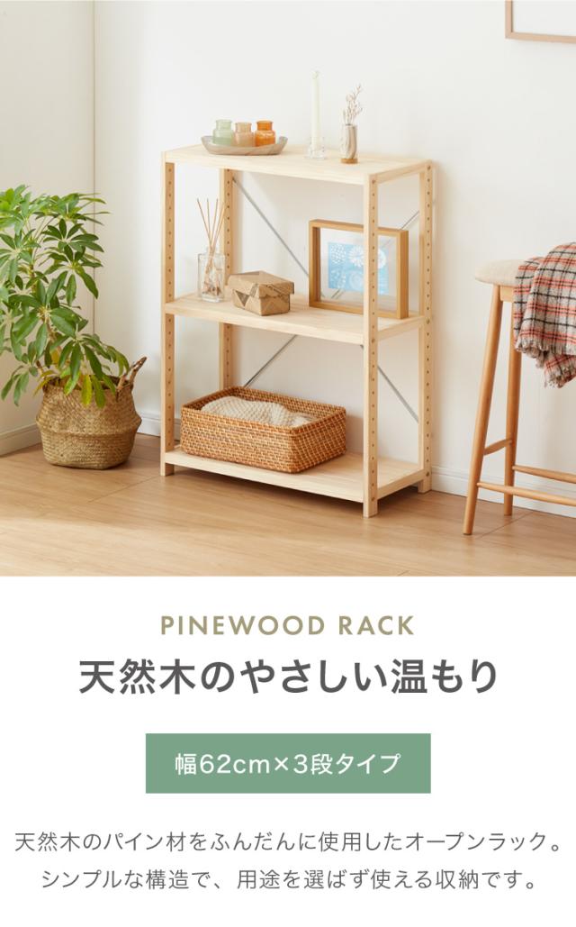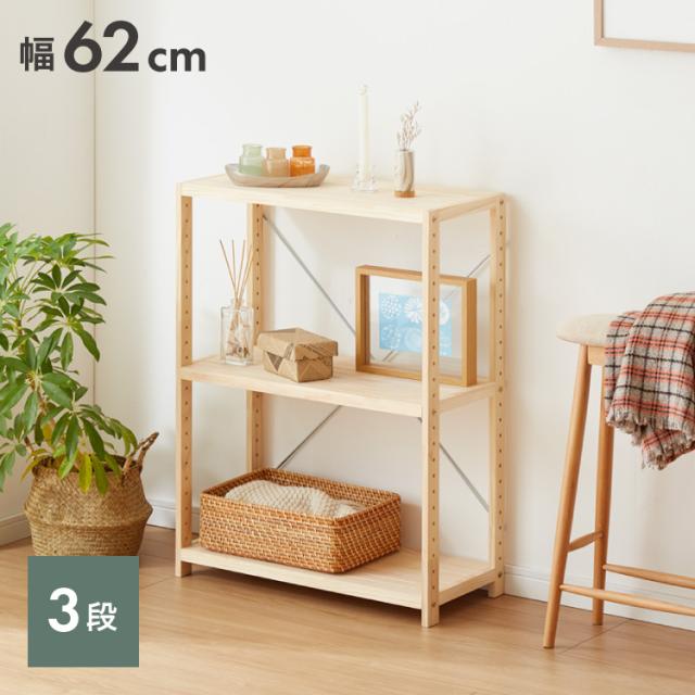 天然木 パインラック 3段 幅62 オープンラック 三段 おしゃれ 木目 木製 収納 パイン材 シェルフ 奥行き30 高さ83 北欧 ラック 木目調(代引不可)【送料無料】