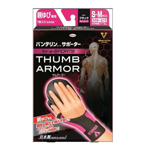 興和 バンテリン サポーター eスポーツ サムアーマー 親指専用 S〜M 黒×ネオンピンク 1枚入り