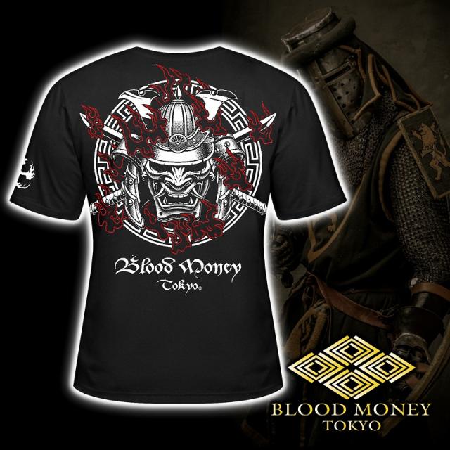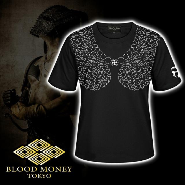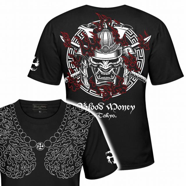 半袖 Tシャツ 服 BLOOD MONEY TOKYO (ブラッドマネートーキョー) 和柄 鎧武者 和彫りトライバル 刺青 mbt-22002 黒 白 メンズ ファッション ヤクザ ヤンキー オラオラ系 派手