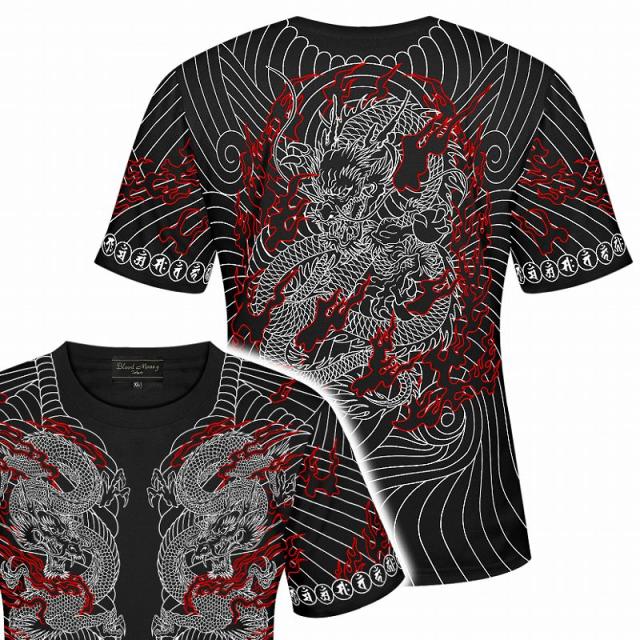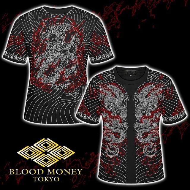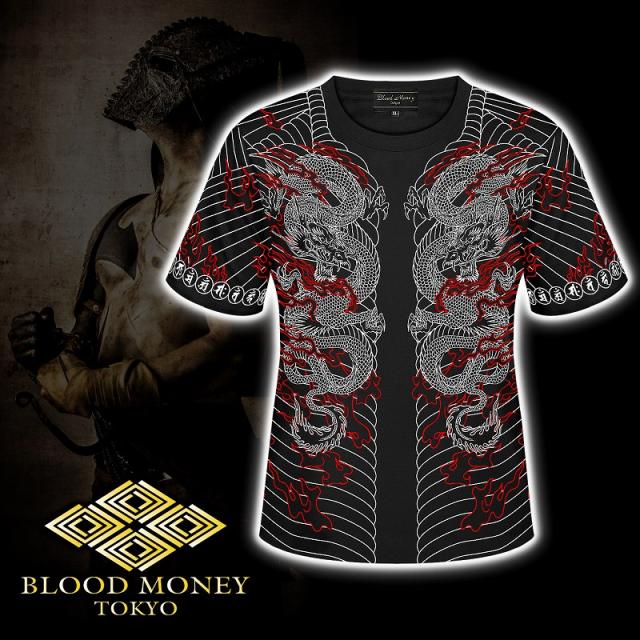 半袖 Tシャツ 服 BLOOD MONEY TOKYO (ブラッドマネートーキョー) 龍刺青 和彫り 胸割 和柄 mbt-22003 黒 白 メンズ ファッション ヤクザ ヤンキー オラオラ系 派手