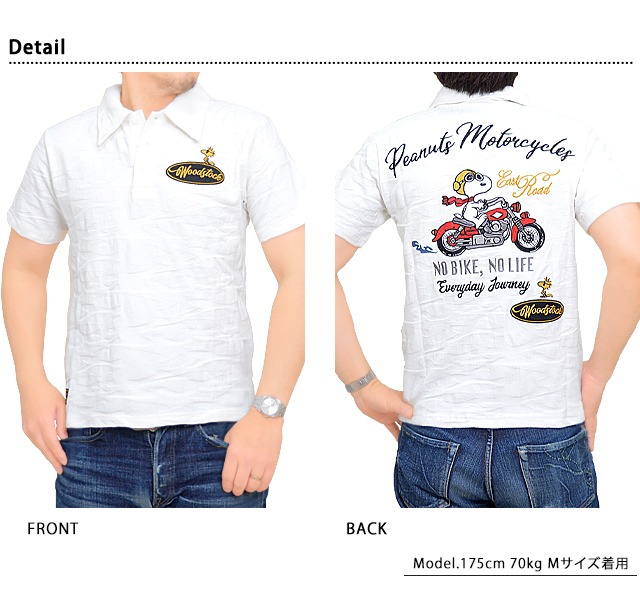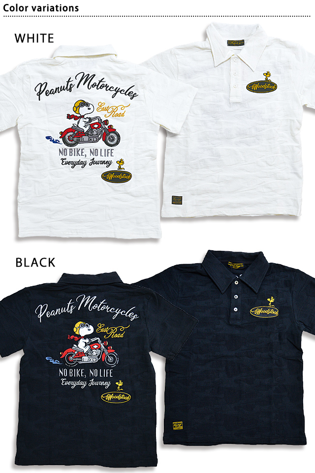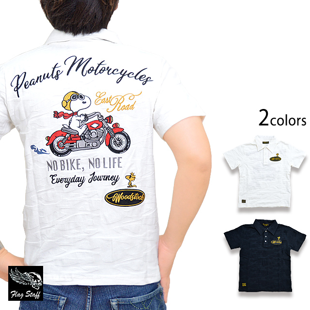 斬新なアイディアとインパクトのあるデザインが魅力的な、絡繰魂の姉妹ブランド【Flagstaff】より「スヌーピー×フラッグスタッフ ジャガードポロシャツ(422064)」のご紹介です。 今回は総刺繍デザイン! バックにしっかり柄を入れている分、フロントはシンプルに仕上げ、メリハリを付けました。 ボディーにジャガード織りが施された生地を採用した半袖Tシャツです。 アメカジ×スヌーピーが絶妙に組み合わせられた、Flagstaff拘りの逸品です。 | ||||||||||||||||||||||||||