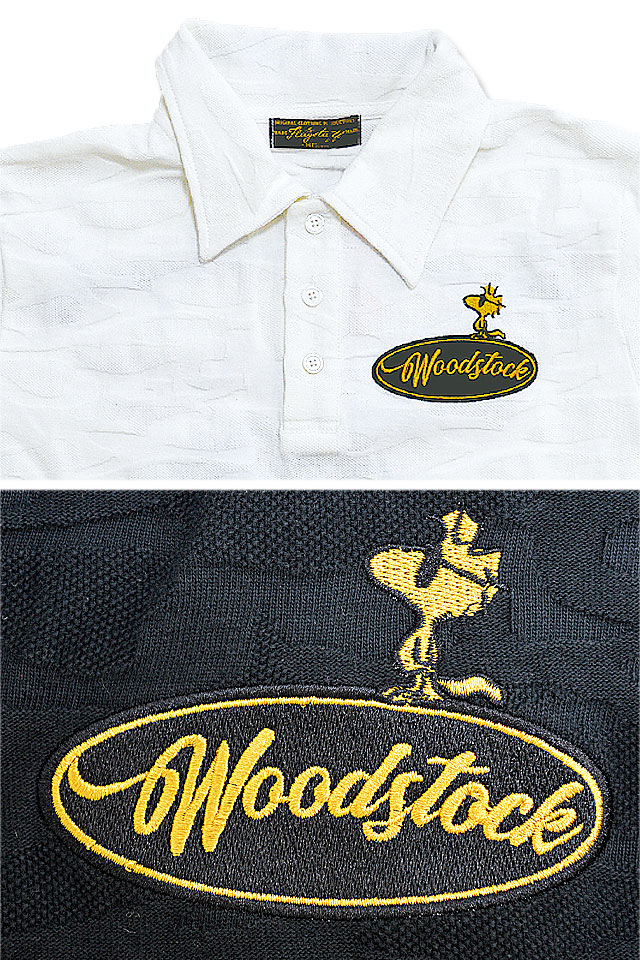 左胸にはブランドロゴが描かれたワッペンとウッドストックをデザイン。