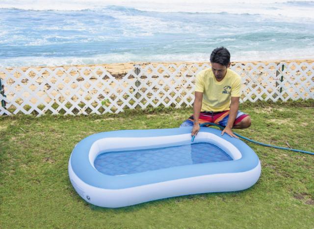 メーカー名:JILONG 販売業者:(株)イガラシ 原産国:中国 素材:塩化ビニール樹脂 ふくらましサイズ:約163×104×25cm 水の使用量の目安:100L 気室:2 内容物:本体1、 水抜き栓:なし パッケージ形態:個別化粧箱入り30×24,5×7cm 対象年齢:2歳以上