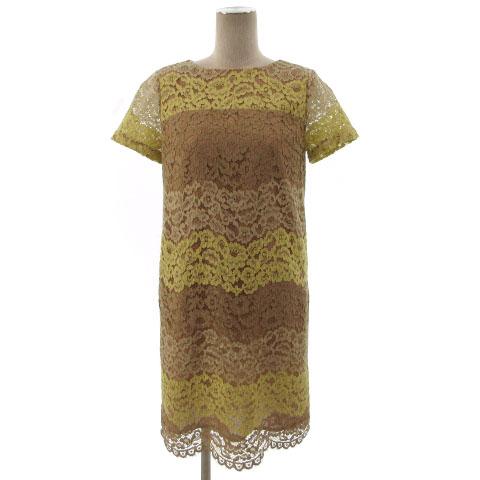 【中古】ダイアグラム Diagram GRACE CONTINENTAL ワンピース ひざ丈 半袖 総レース 茶 ベージュ 黄色 36