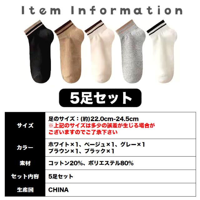 靴下 レディース くるぶし 5足セット ライン ラインデザイン おしゃれ ソックス かわいい スニーカー ソックス ショートソックス ショート ソックス 無地 夏 秋 冬 春 ブラック ホワイト ベージュ グレー ブラウン