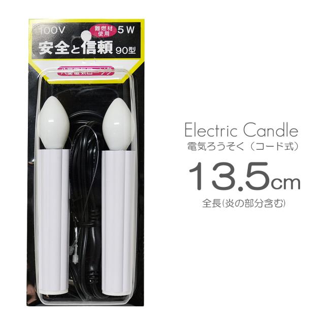 電気ろうそく 90型 011 全長13.5cm 2本タイプ ロータリスイッチ付き 電気式 コード式 ローソク ロウソク ろーそく 蝋燭 お仏壇用