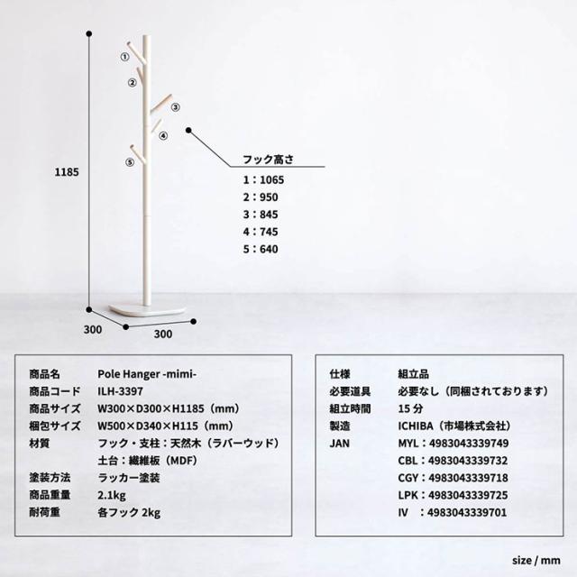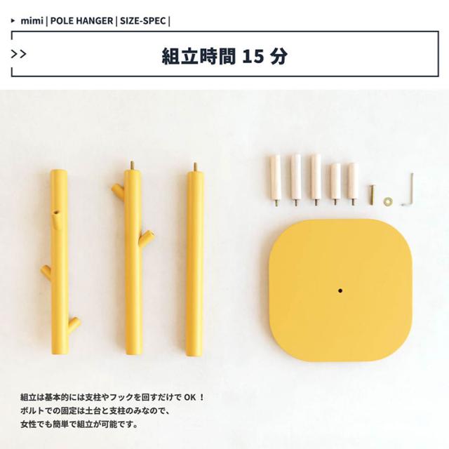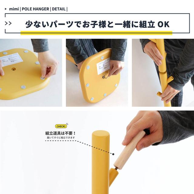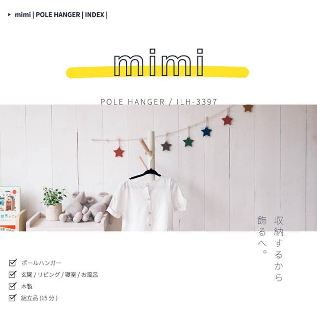 ポールハンガー mimi H118cm 5色対応 ハンガー ハンガーラック ポールハンガー ハンガーポール 木製 ラバーウッド コートかけ 洋服掛け 帽子掛け コンパクト スリム 玄関 寝室 リビング