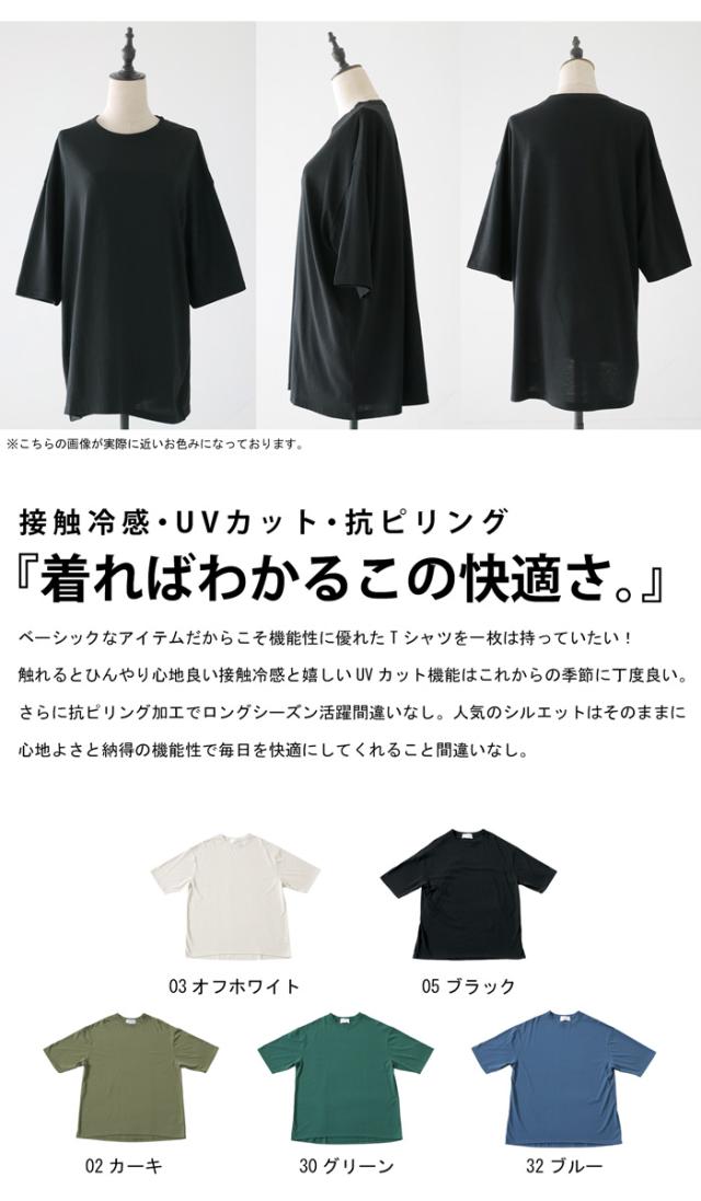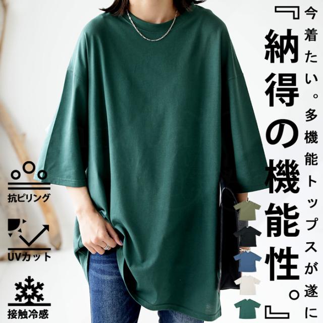 接触冷感 UVカット Tシャツ レディース 半袖 無地 ビッグT・再入荷 (50)メール便可