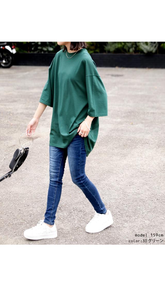 za-00106u 機能性ウェア トップス ひんやり 涼しい ゆったり シンプル 綿混 抗ピリング カットソー クルーネック 五分袖 オーバーサイズ ビッグシルエット 大きいサイズ ユニセックス
