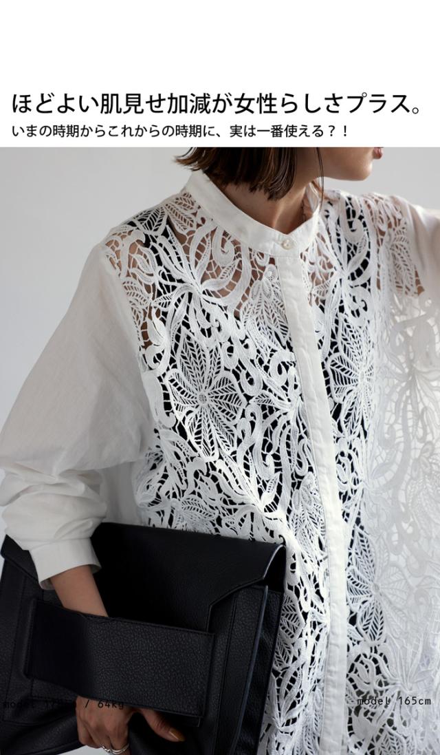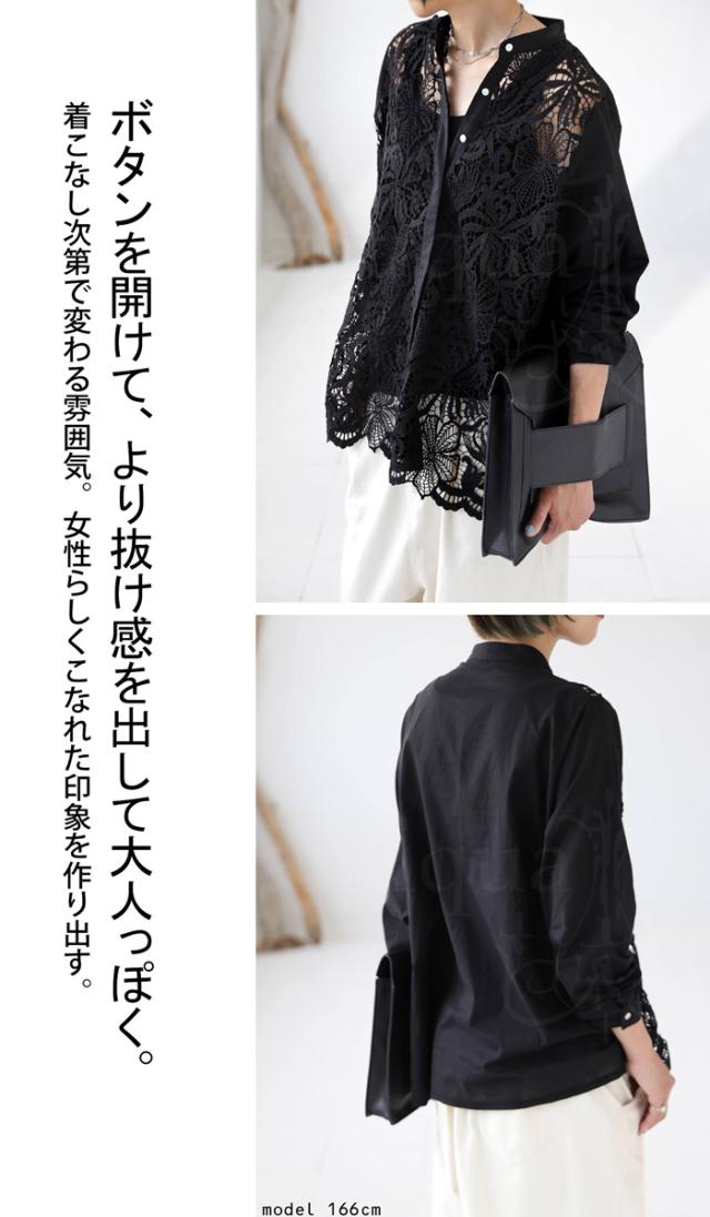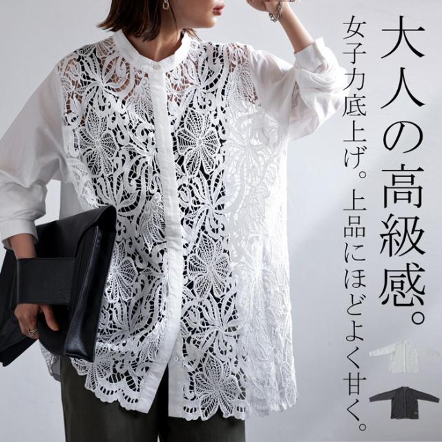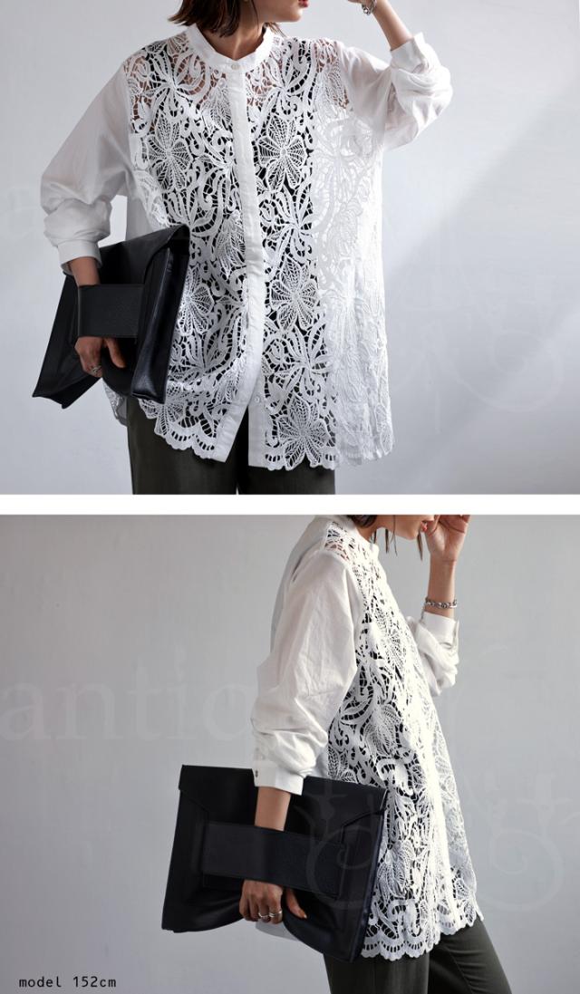 【検索ワード】レースフロントシャツ シャツ レディース トップス 長袖 レース 上品 きれいめ ブラウス 透け 重ね着 レイヤード スタンドカラー バンドカラー 比翼ボタン シェルボタン フォーマル 結婚式 二次会 パーティー オケージョン antiqua アンティカ 大人 おしゃれ 10代 20代 30代 40代 50代 60代 春 夏 お洒落 カジュアル かわいい かっこいい あんてぃか