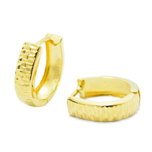 表面にカットが施されたキラキラと輝くシンプルなデザインピアスです。留め金具はワンタッチで留めやすく落ちにくい中折れ開閉式です。