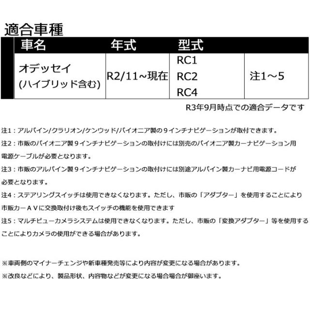 ホンダ オデッセイ(RC1,RC2,RC4) R2/11~現在 9インチナビ取付キット パネル/取り付け TBX-H010