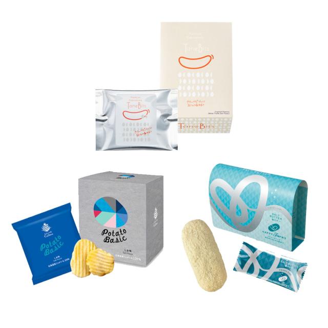 内容ハッピーターンズ 塩バター味賞味期限 : 製造日より常温 120日グランカルビー しお味 69g賞味期限 : 製造日より常温 180日タネビッツ クラックピーナッツ白トリュフ塩仕立て 55g賞味期限 : 製造日より常温 150日