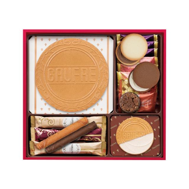 サクサクの定番商品ゴーフルをはじめ、当店の人気商品をセレクトしたバラエティ豊かなお詰め合せです。お祝い返しなどのお慶びや、お供え物や粗供養などの悲しみのときなど、秋冬用のご進物としておすすめのギフトセットです。内容:ゴーフル3枚(バニラ、ストロベリー風味、チョコレート×各1枚)ゴーフル・オ・グーテ(抹茶)2枚プティーゴーフル・オ・グーテ(紅茶)3枚パピヨット4本、チョコレートパピヨット2本パレ・オ・ショコラ、パレ・ノアール各3枚ゴーフルクランチ2個 パッケージ:缶・紙箱サイズ:26.5×29.0×4.0cm賞味期間:製造日より6ヶ月特定原材料等28品目:小麦・卵・乳成分・大豆保存方法:直射日光、高温多湿な場所を避けて常温で保存。開封後はお早めにお召し上がり下さい。※代理購入となります。ご了承ください。