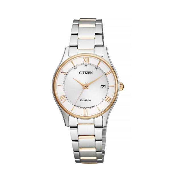 シンプルデザインの薄型電波モデル。日付表示付きで、ビジネスシーンで大活躍。ステンレスのコンビベルトは、大人の色気を感じさせます。