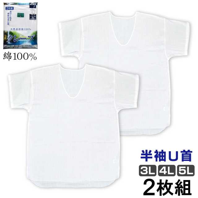 肌着 メンズ 半袖 大きい サイズ 2枚組 Uネック Tシャツ インナー クレープ 綿100%ホワイト