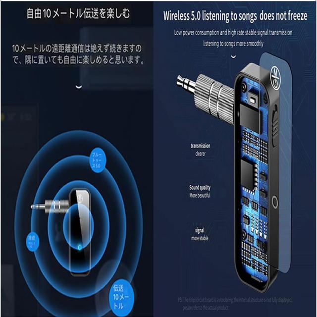 Bluetoothトランスミッター レシーバー 受信機 車載 bluetooth 5.0 カーオーディオ ブルートゥース レシーバー イヤホンジャック スピーカー 無線 BULURESHI