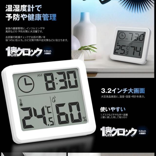 温湿度計 デジタル 大画面 温度計 湿度計 シンプル 時計 薄型 卓上 おしゃれ 熱中症対策 クロック 気温 リビング ペット 小型 爬虫類 温度管理 赤ちゃん 育児 熱中症対策 WANOKU