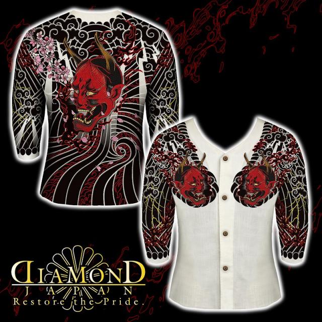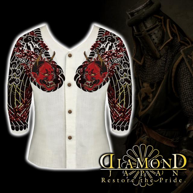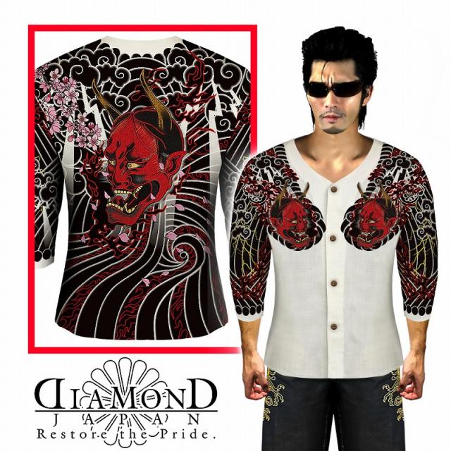 鯉口シャツ 和柄 和彫り 般若柄 刺青 綿麻 ヤクザ ヤンキー オラオラ 悪羅悪羅 オラオラ系 五分袖 柄シャツ 服 DIAMOND JAPAN DJ-188 派手 夏物 祭り 花火 イベント メンズ ファッション 大きいサイズ