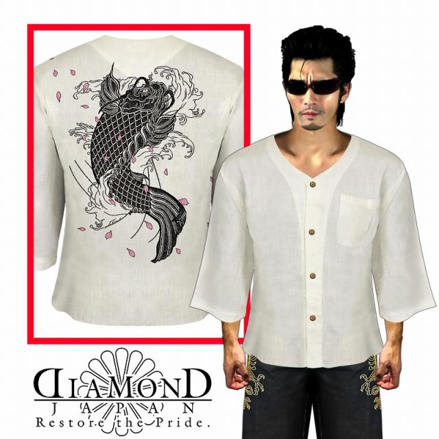ダボシャツ 和柄 桜鯉 柄 刺青 綿麻 ヤクザ ヤンキー オラオラ 悪羅悪羅 オラオラ系 五分袖 柄シャツ 服 DIAMOND JAPAN DJ-188 派手 夏物 祭り 花火 イベント メンズ ファッション 大きいサイズ