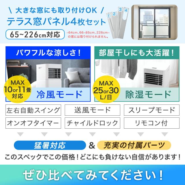 【正午〜P5%還元】 猛暑対応 パワフル冷風 スポットクーラー テラス窓パネル付 [2.3kW・25L/日] ノンドレン 家庭用 冷風機 スポットエアコン クーラー ポータブルクーラー ポータブルエアコン 窓用エアコン 移動式エアコン 工事不要 室内 床置き 熱中症対策