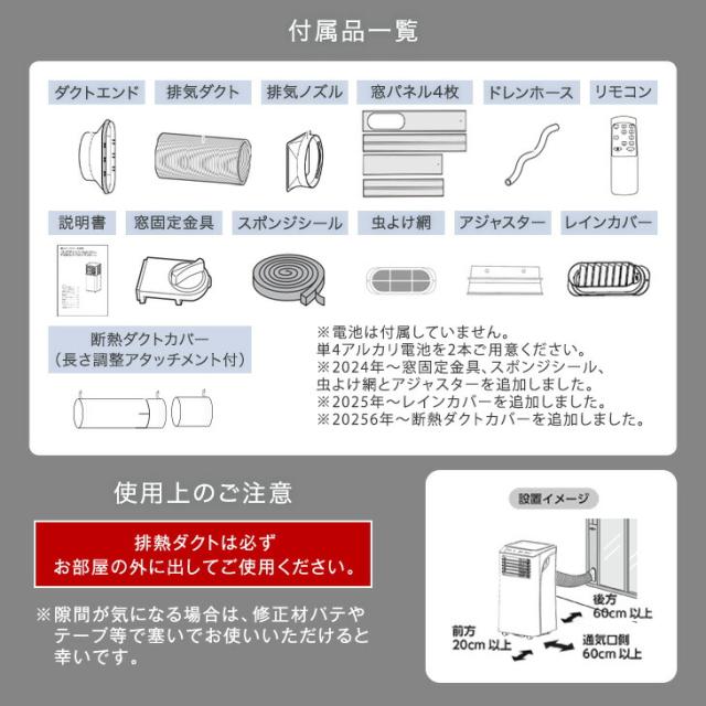 ※2026年4月3日、付属品に断熱ダクトカバー、リモコンにスイングボタンが追加されました。(2026年モデル)