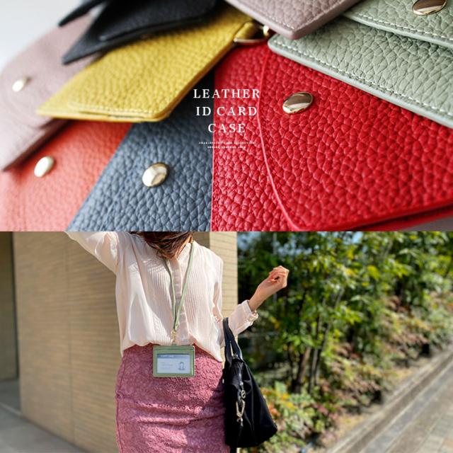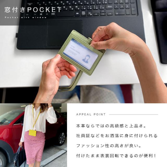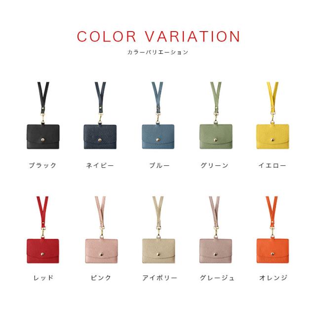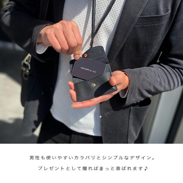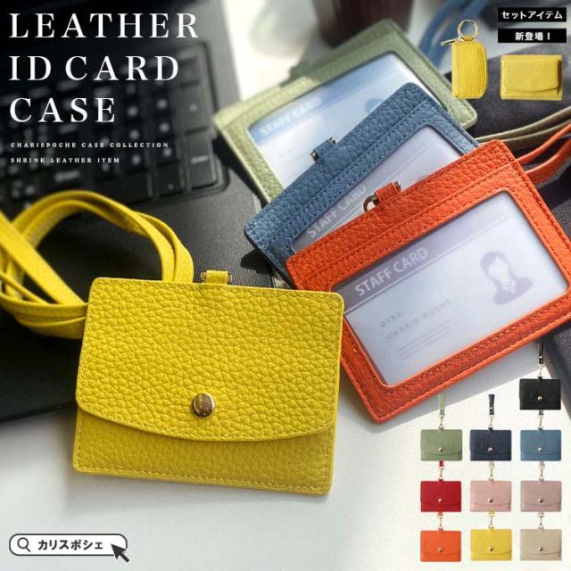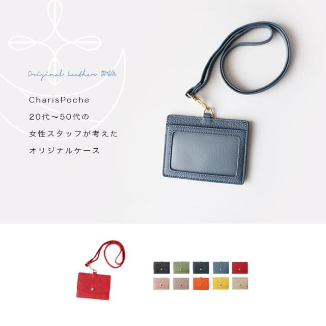カリスポシェ CharisPoche IDカードホルダー ネックストラップ付き メンズ レディース ユニセックス 本革 シュリンクレザー IDカードケース フリーポケット パスケース ブラック ブルー グリーン グレージュ アイボリー ネイビー オレンジ ピンク レッド イエロー ab-cd501