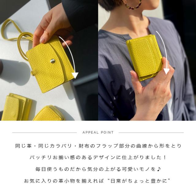 本革ならではのシボ感が楽しめるシュリンクレザーを使用しており、老若男女問わず選びやすい豊富な10カラーをご用意しました。カリスポシェの特徴的な緩いカーブデザインがフリーポケットに表現されています。