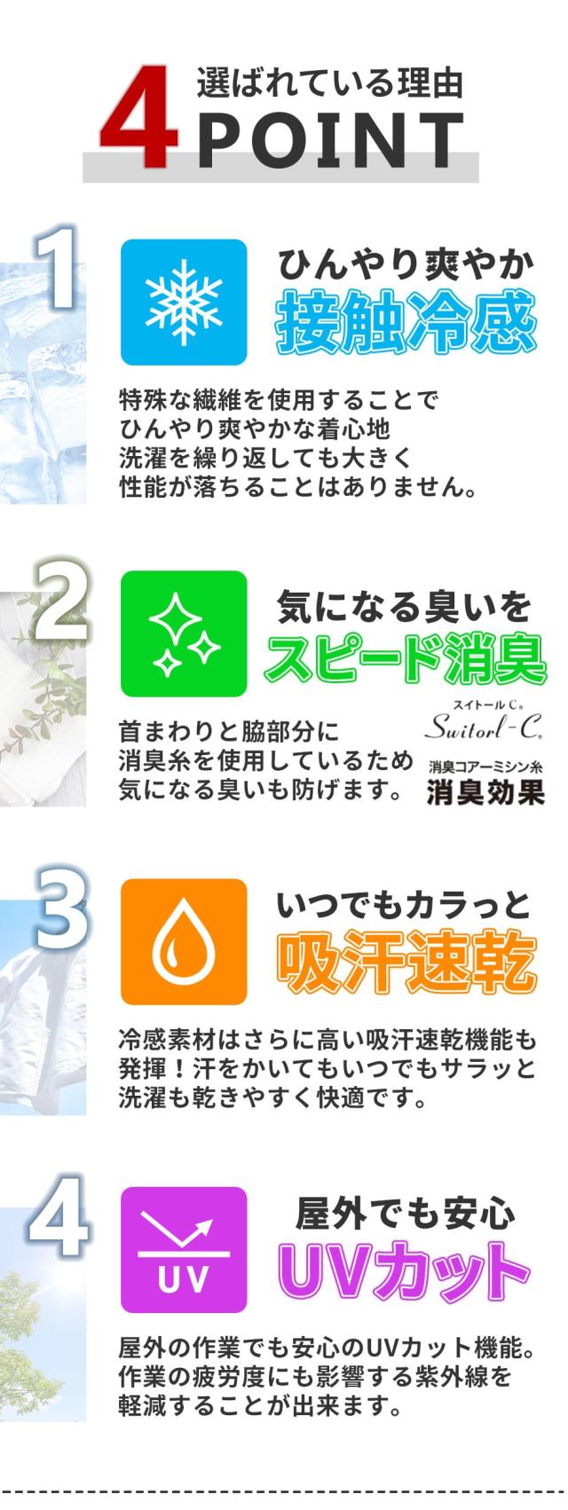 接触冷感 吸汗速乾 スピード消臭 適度な締め付け(コンプレッション) ストレッチ 伸縮性 UVカット