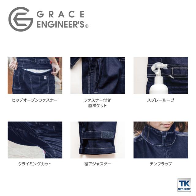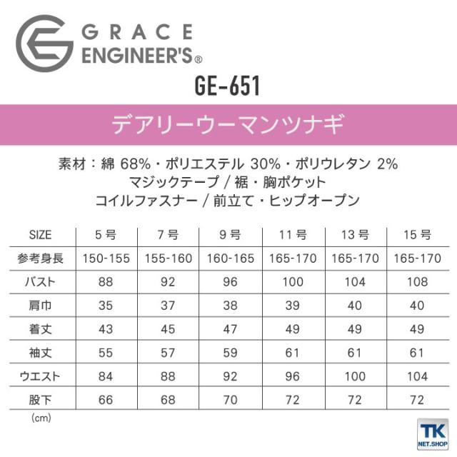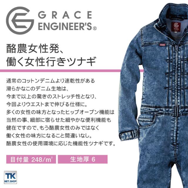 デアリーウーマンツナギ つなぎ 長袖 レディース GRACE ENGINEER'S 限定生産 酪農 農業 農作業 ガーデニング アウトドア DIY 動きやすい 作業着 作業服 SKプロダクト 春夏 秋冬 sk-ge651