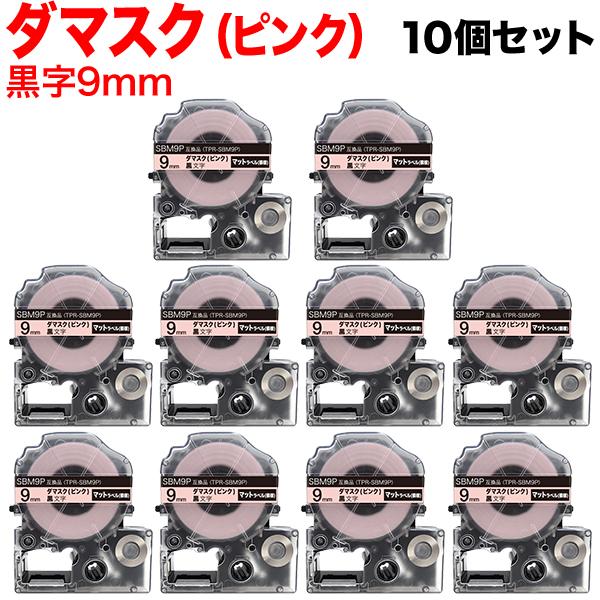 【メール便送料無料】 テプラテープの経費削減に! テプラカートリッジ 互換 キングジム用(KING JIM用) TPR-SBM9P-10P (9mm/ダマスク(ピンク)/黒文字/マットラベル(模様))