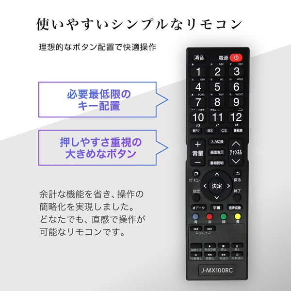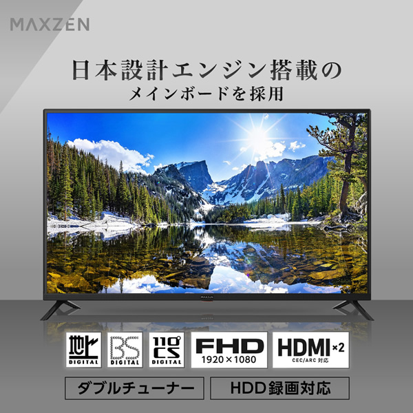 関連ワード J43CH06 MAXZEN マクスゼン 43V型 43インチ 液晶テレビ フルハイビジョン 外付けHDD録画機能 ダブルチューナー 直下型LEDバックライト VAパネル 壁掛け対応 ゲームモード 三脚スタンド対応 HDMI2系統 地上・BS・110度CSデジタル スピーカー内蔵 リモコン リーズナブル