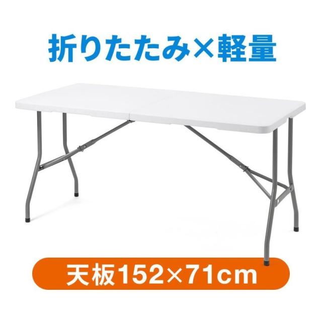折りたたみテーブル 幅152cm 奥行71cm 樹脂天板 ホワイト[100-FD021W]