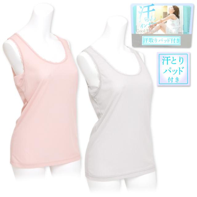 【送料無料】婦人 レディース 汗取りパッド付き ラン型 インナー フライス リブ織り 伸縮性 下着 M L LL yg-1268【メール便対応】