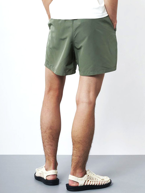 後身頃はフラップポケット仕様で、ゆとりのあるシルエット、丈はGRAMICCIのショーツの中では最も短いモデルです。