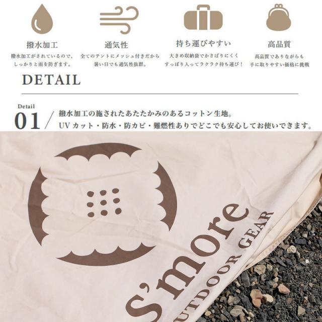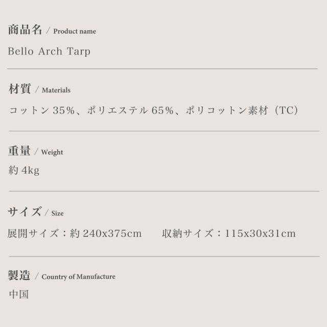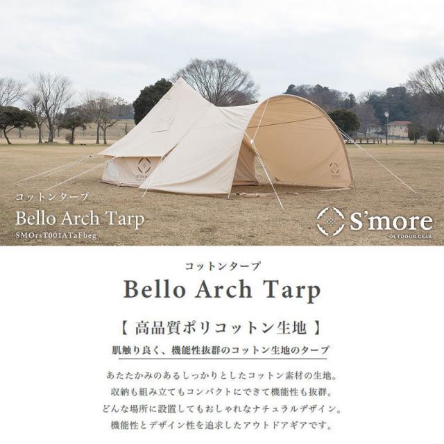 Smore/スモア Bello Arch Tarp ベロアーチタープ アーチ型コットンタープ スモアのベル型テントに連結 bello300 bello400テントに対応 ベル型テントの前室として可愛らしいコットンタープ おしゃれ