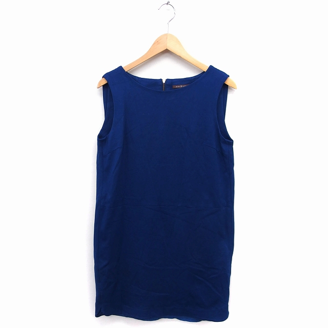 【中古】ミミ&ロジャー mimi&roger ワンピース ノースリーブ ひざ丈 ボートネック 無地 38 ブルー 青 /FT13 レディース