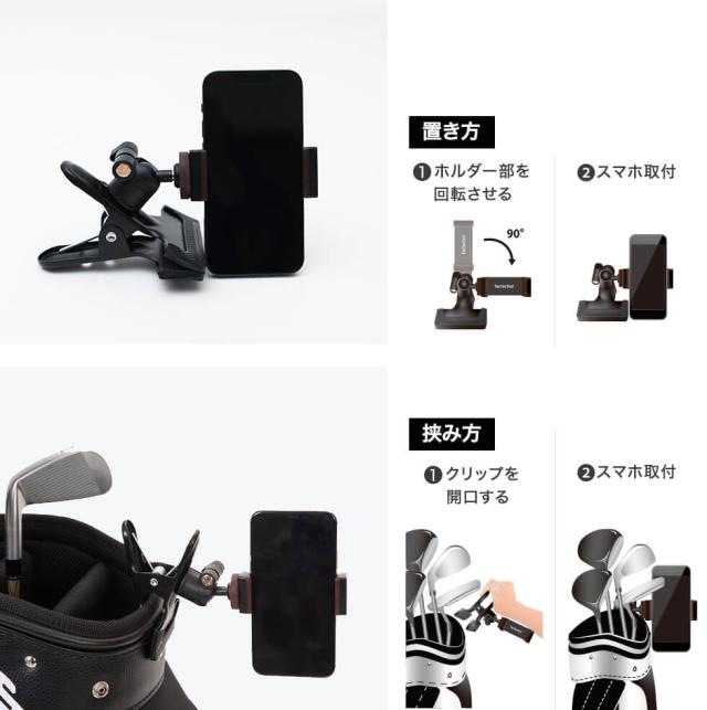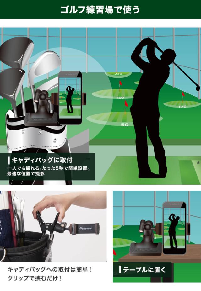 スマホを固定して自分のスイングを撮影。様々なシーンで活用できます。