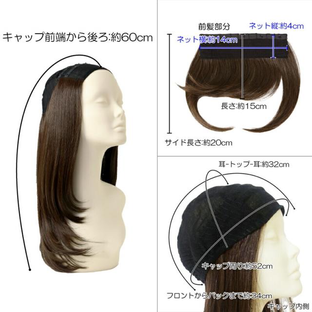 ・付属前髪のサイズ:ヘア部分約15cm サイド約20cm