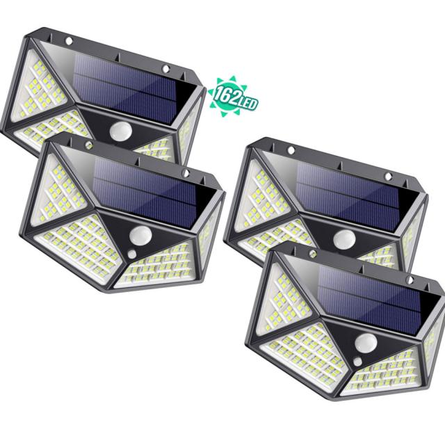4個セット 162チップ led ソーラーライト センサーライト ランプ 防水 投光器 看板 高輝度 照明 屋外 ソーラー発電 玄関灯 ポーチライト