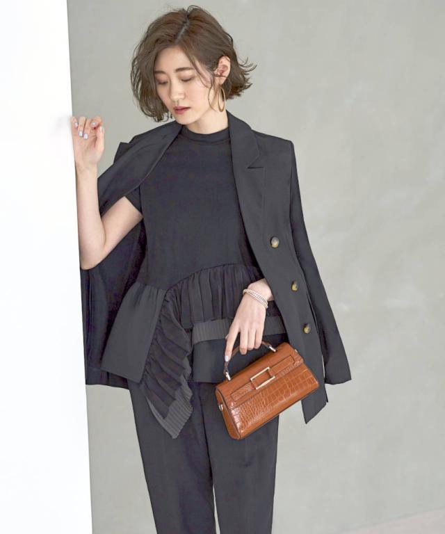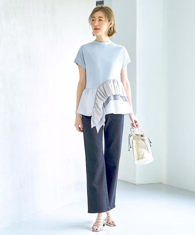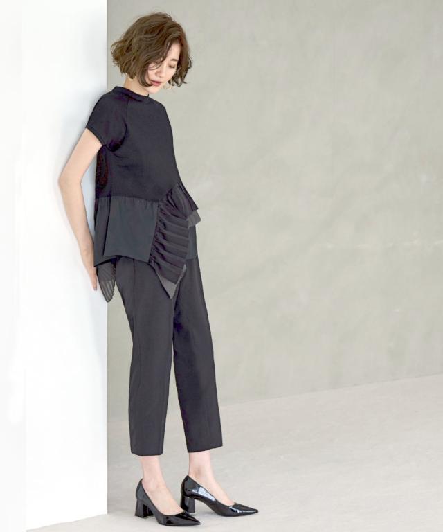 ルイルエブティック/【S〜3L】異素材ダブルプリーツペプラムカットソー
