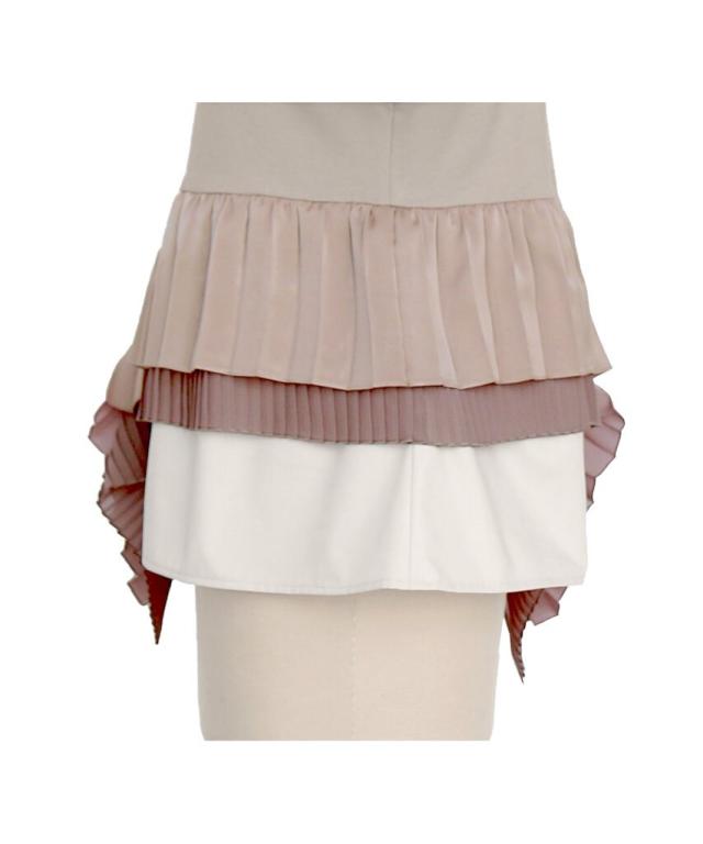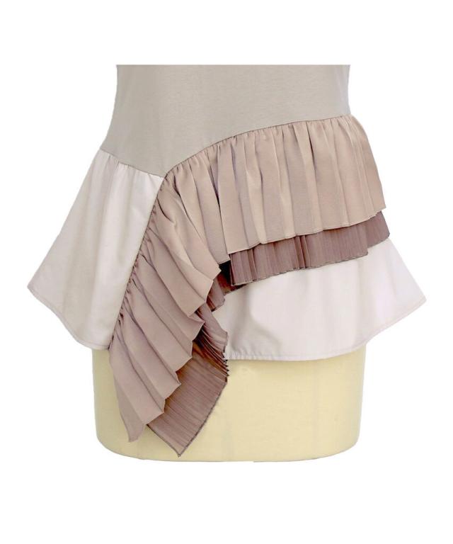 2種類のプリーツ素材をミックスし、ペプラムシルエットに仕上げたTシャツ。