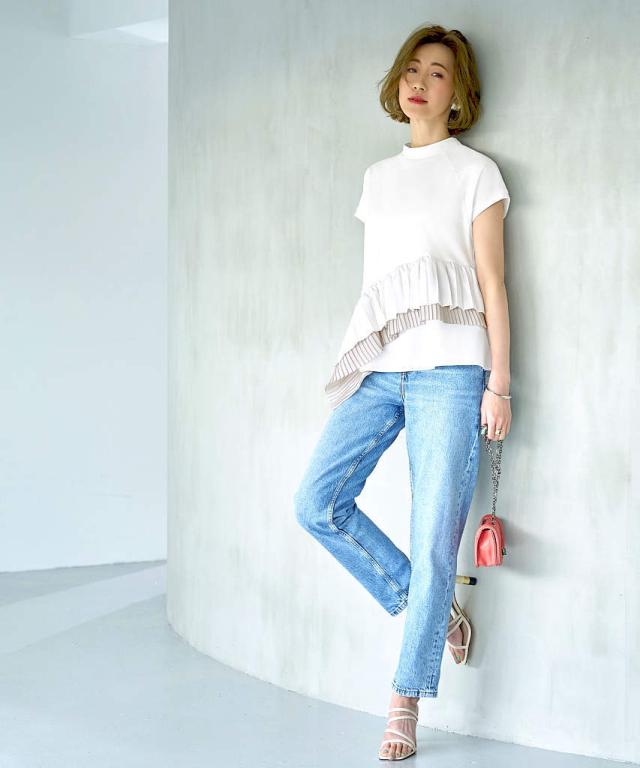 ペプラム切替はシャツ地を使用し、カジュアル過ぎないキレイめなスタイルに仕上げました。