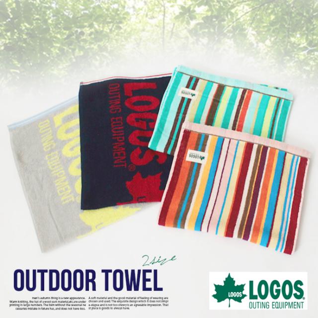 タオル LOGOS ロゴス アウトドア レジャー キャンプ スポーツ 吸水性 綿100% ボーダー ロゴ 値下げ セール 送料無料