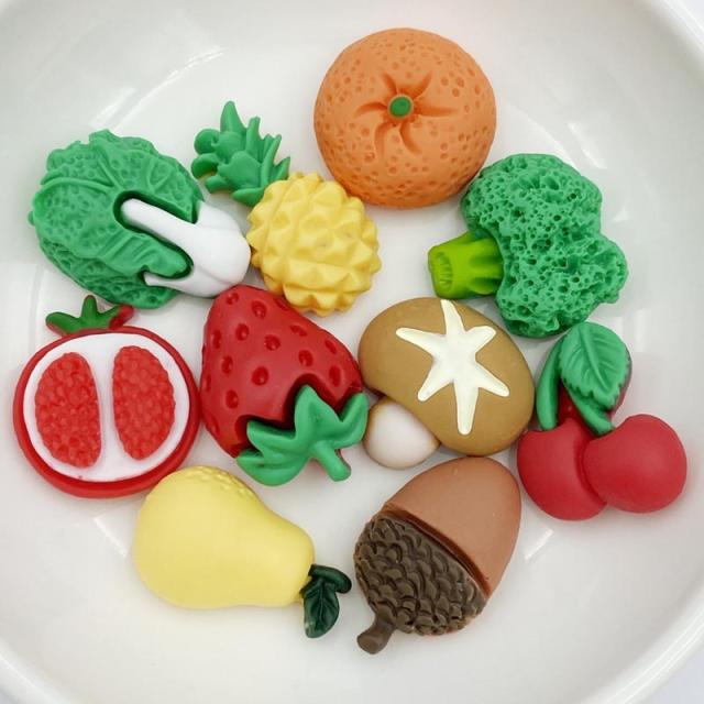 プラスチック製のお野菜のベジタブルや果物のフルーツをモチーフにしたおもしろいカラフルなDIY用クラフトパーツ。