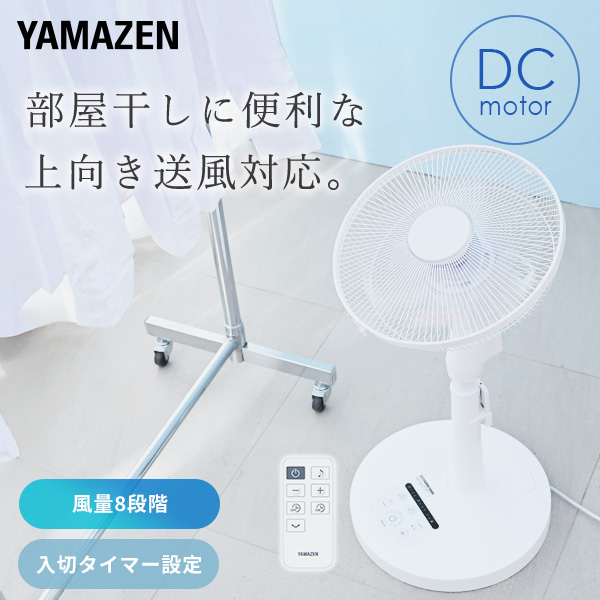 扇風機 DCモーター リビング扇風機 30cm羽根 90度上向き 風量8段階 フルリモコン 静音 入切タイマー RLX-GHD030(W) DC扇風機 左右首振り 首ふり 首振り角度調節 衣類乾燥 山善 YAMAZEN 【送料無料】