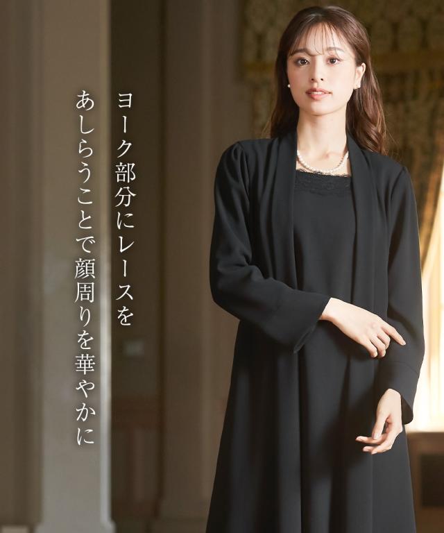 [keyword] レディースファッション 大きいサイズ レディース 標準サイズ 普通サイズ ゆったりサイズ プラスサイズ 七分袖 おしゃれ フレア 防しわ アイロン おでかけ 洗濯機洗いOK 洗濯 オールシーズン 通年用 春 夏 秋 冬 年中 一年間 夏用 サマー 涼しい [comment] 品のある格式高い装いを大切にする方へ礼節に沿った気品のある姿を叶えてくれる王道ブラックフォーマル こだわりポイント着心地を追求した洗練ブラックフォーマル一枚できちんと見えアンサンブル風前開きワンピースできちんと見えをしっかり演出トッパーを羽織ったようなアンサンブル風デザイン気分に合わせてリボンアレンジ可能!前リボンで大人可愛い着こなしに後ろリボンでこなれた着こなしに前開き仕様で着脱楽チン、お化粧崩れもカバーブラックフォーマル生地(漆黒)を使用、きちんと感のある装いに防しわなので、しわになりにくい洗濯機(ネット使用)で洗えるので、お手入れ楽チン喪服としてだけでなく、結婚式・参観日・卒業式などすべてのフォーマルシーンに対応できるワンピースです 体型カバーポイント体型を拾いにくいデザインなので、きれいなきこなしにロング丈で膝見えをカバー 対応着用シーン【お通夜】【葬儀】【告