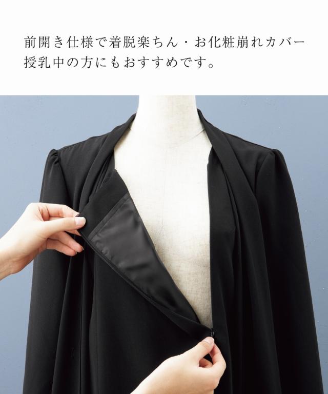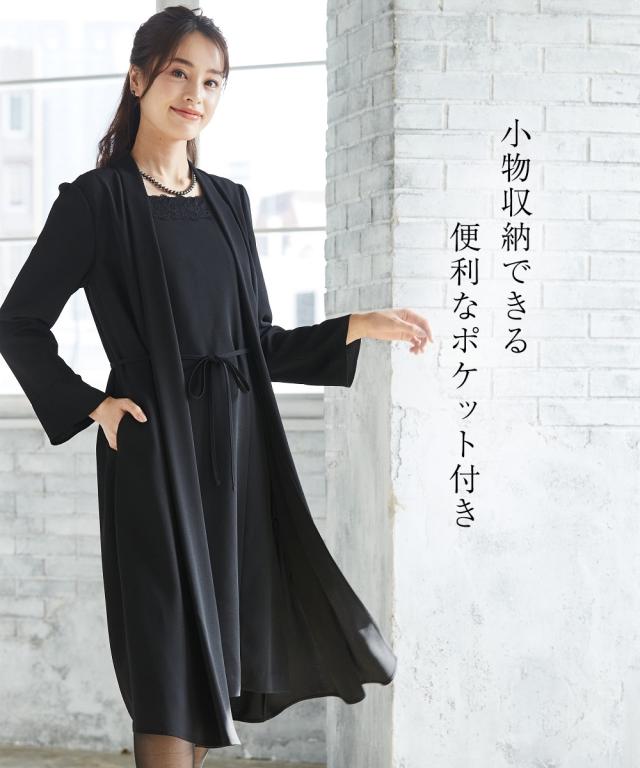 【喪服・礼服】洗える防しわ軽い羽織りアンサンブル風前開きワンピース<大きいサイズ有>
