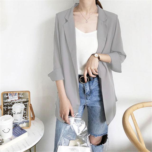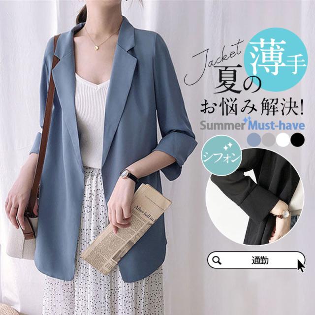 【水曜日まで!10%クーポン配布中】 テーラードジャケット レディース スーツジャケット シフォン 夏 七分袖 薄手 サマージャケット カジュアルスーツ 涼しい きれい
