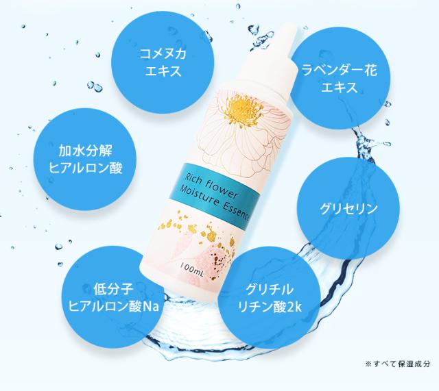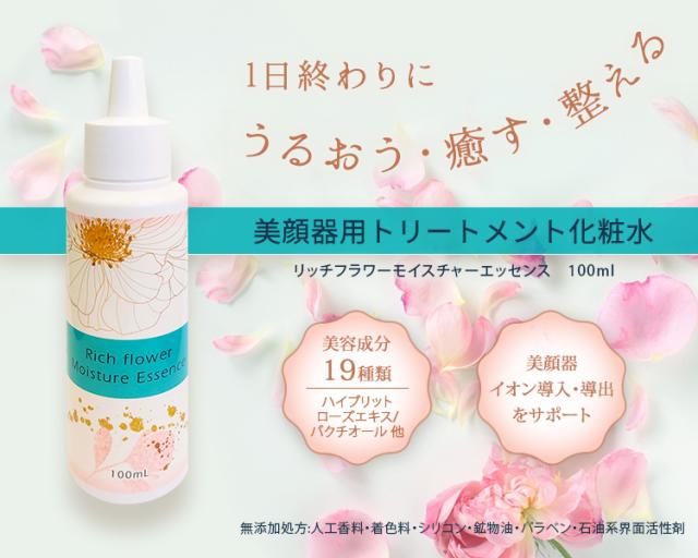 リッチフラワーモイスチャーエッセンス 100ml 化粧水 バクチオール セラミド配合 美顔器 美顔器ジェル イオン導入 化粧水 美容液 おすすめ